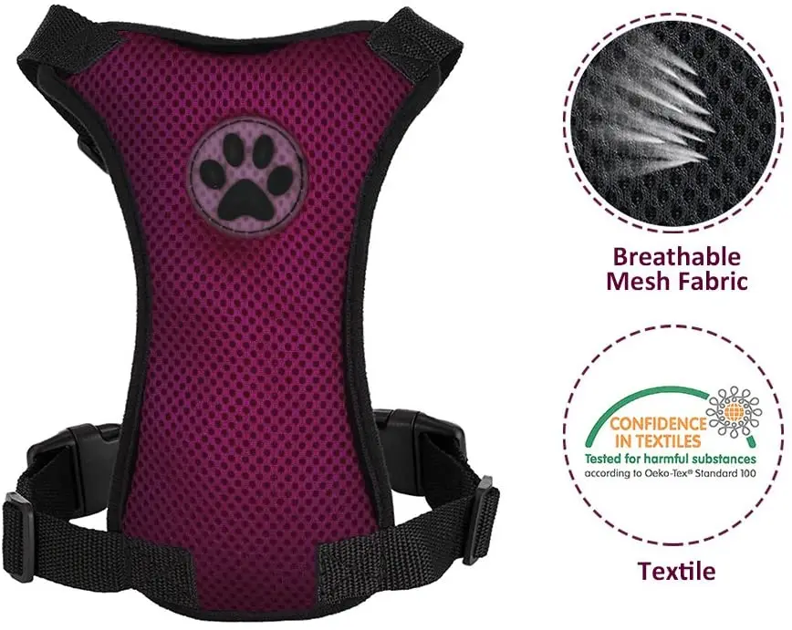 Car Seat Belt & Safety Harness for Pet Dog Cat Adjustable Breathable Mesh Harness with Secure Leads in Vehicle for Travel Trip - anconmall