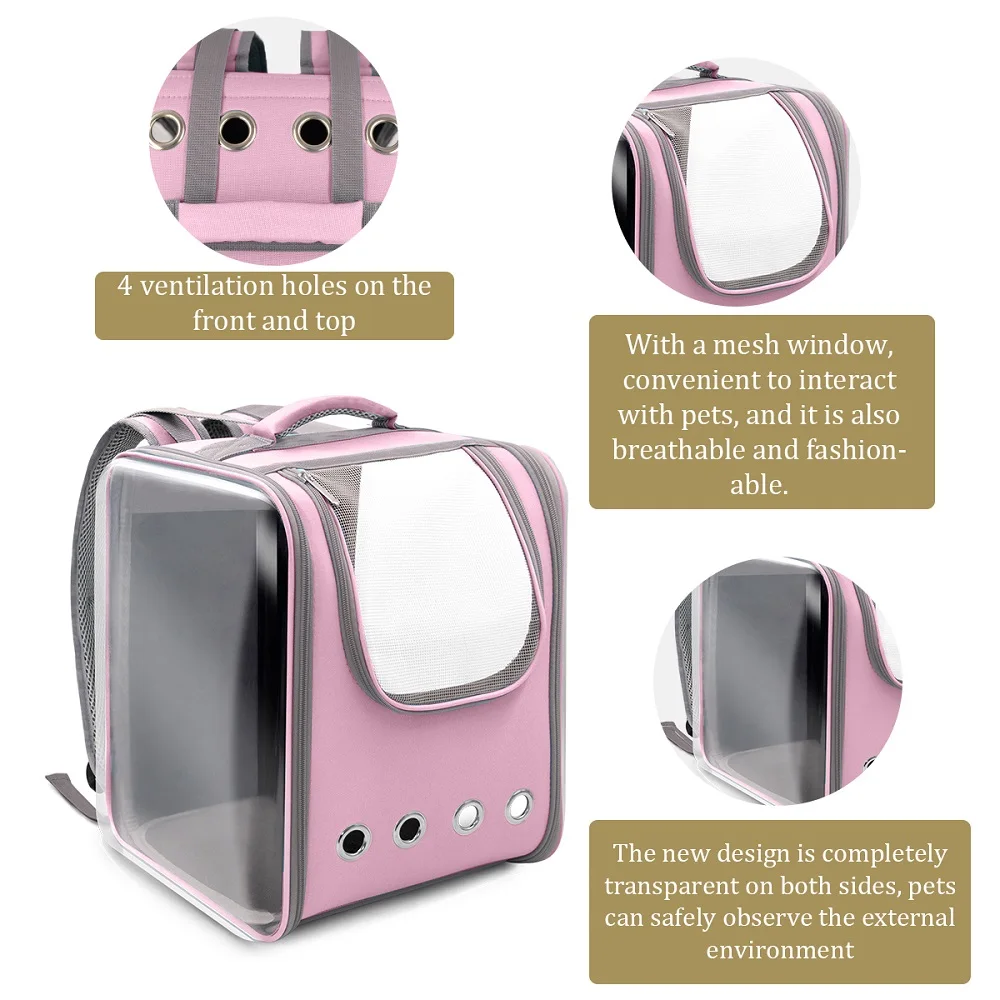 1.Transparent Cover Design, 180 Degree Broader Vision. 2.Breathable and Durable, Better Air Circulation And Anti-scratch Effect. 3.Ergonomic Design, Comfortable Carrying For Pets.