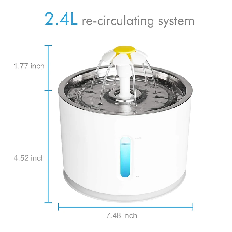 The unique replaceable design filter can effectively filtrate the hair, odor, and chlorine. Consequently, the fountain can give cleaner water to pets and reduce the risk of developing illness. Charcoal filter help remove which absorbs odors and bad taste.