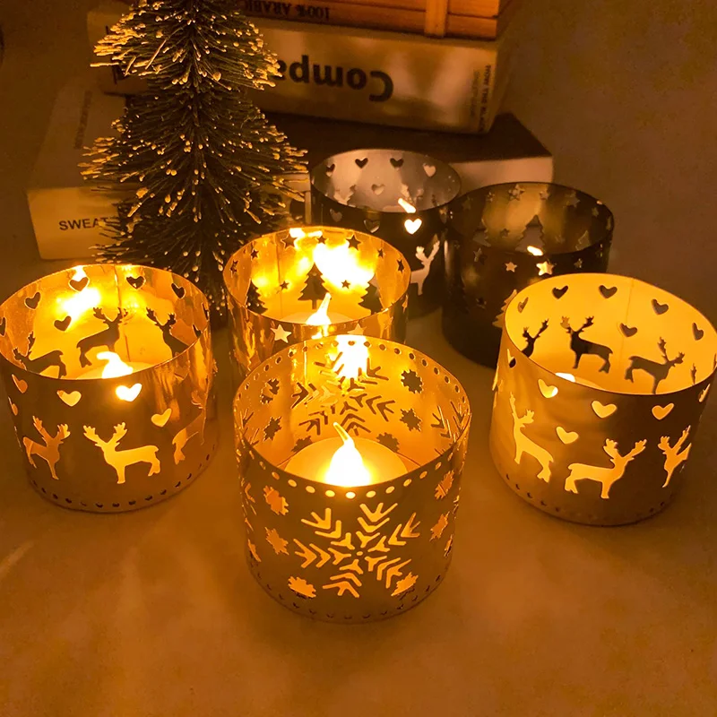 Christmas Iron Hollow Candle Holder Merry Christmas Decorations For Home Table Ornaments Noel Navidad Natal New Year Gifts 2023