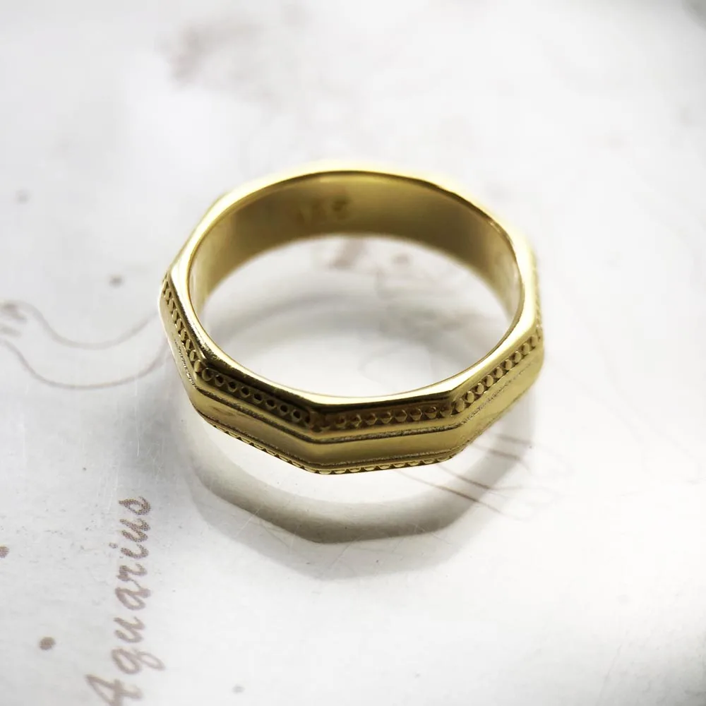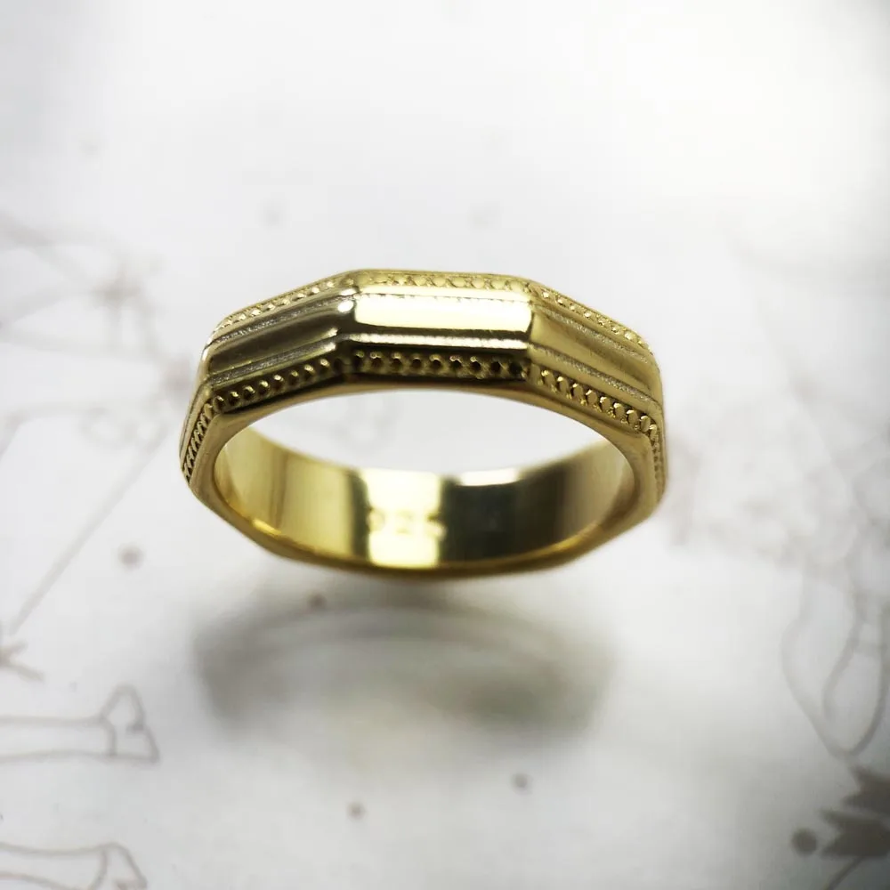 Couples’ Ring Angular Gold,TrendyFine Jewerly For Women Men Autumn Modern Gift In 925 Sterling Silver