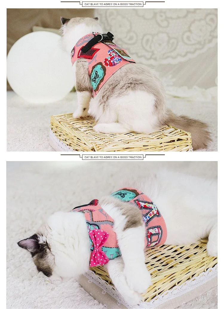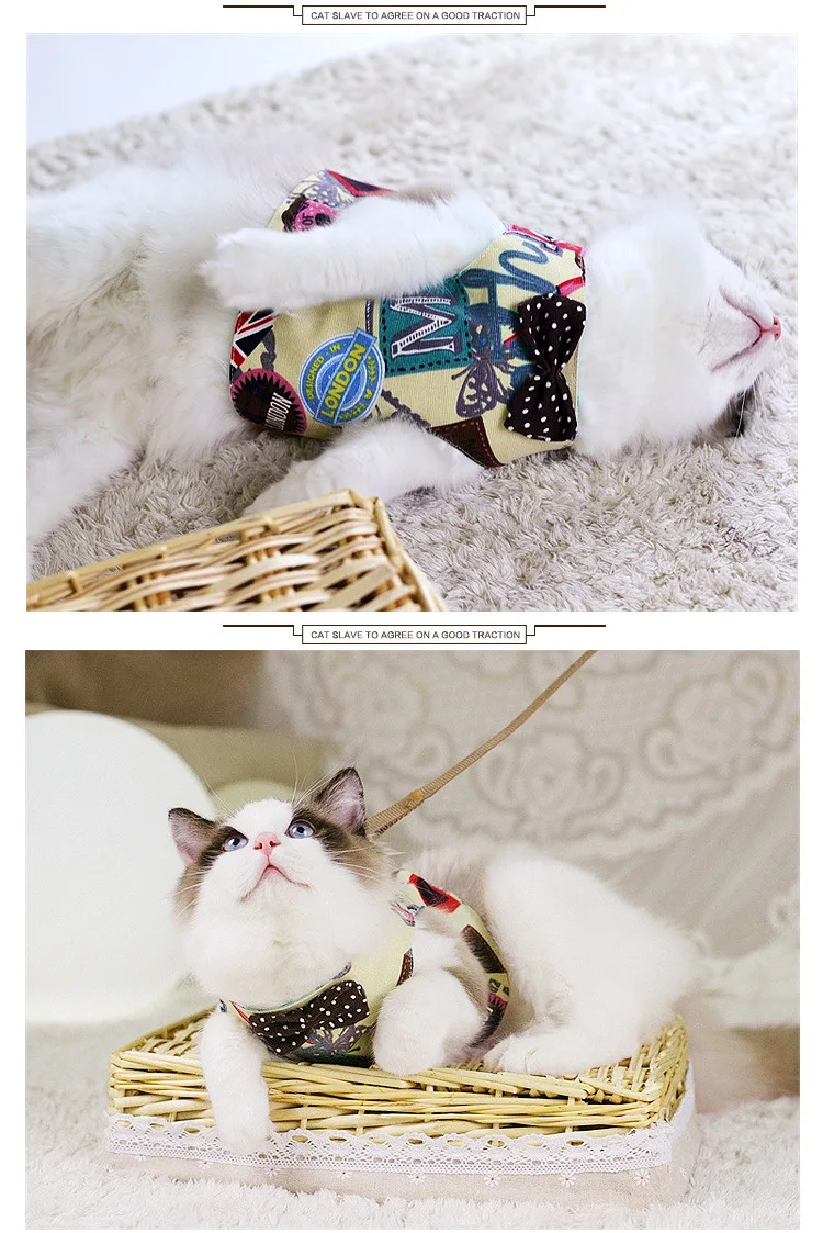 Fashion Cat Harness and Leash Set Bow Tie Adjustable Cute Cats Collar Outdoor Walking For Kitten Cats Accessories Supplies - anconmall