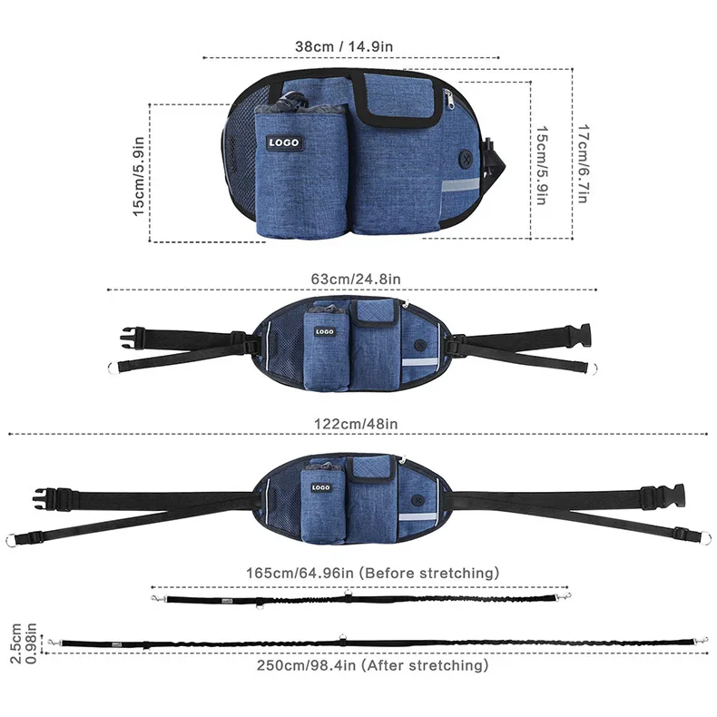 There are luminous reflective threads both on the waist bag and the dog leash, which increase visibility in low light, enhancing safety when walking your pet in the early morning and evening! Helps to keep you and your dog safe when walking or running at twilight or nighttime.