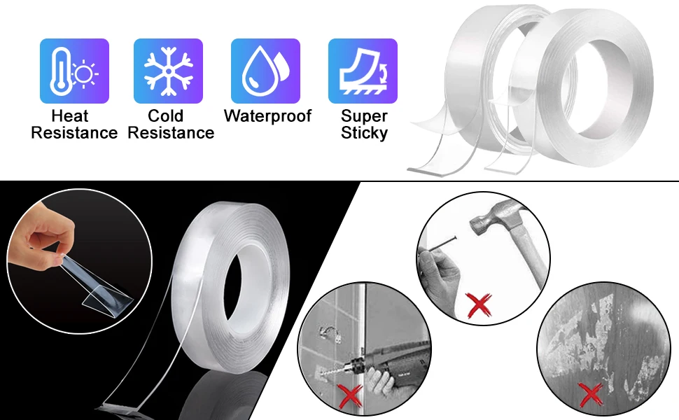 Home Decoration Tapes Monster Tape Waterproof Wall Stickers Reusable Heat Resistant Bathroom Transparent Double Sided Nano Tape
