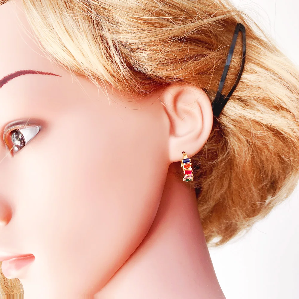Hoop Earring Golden Colourful Stones Europe Style Glam Fine Jewerly For Women New Bohemia Gift In 925 Sterling Silver