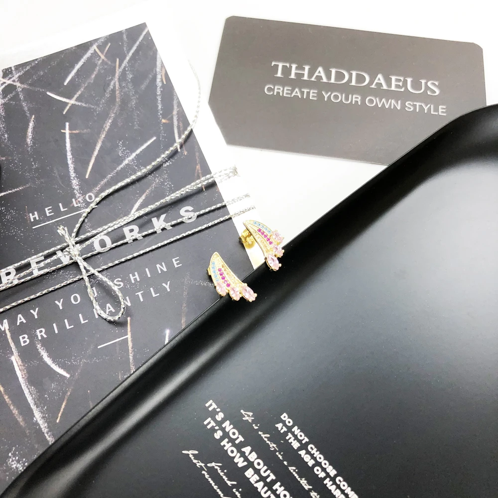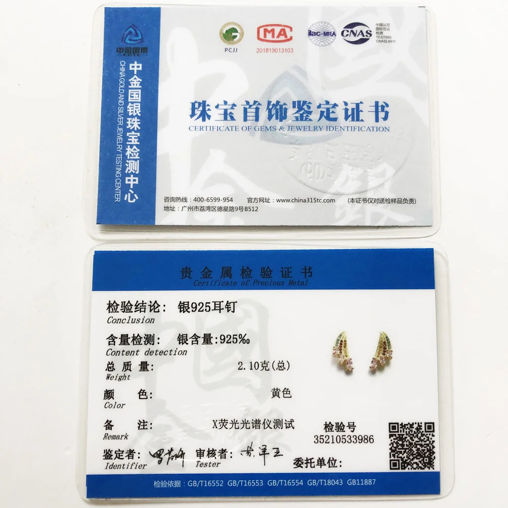 Hummingbird Wing Bright Gold Stud Earring Europe Fine Rainbow Look Jewerly For Women New Bohemia Gift 925 Sterling Silver