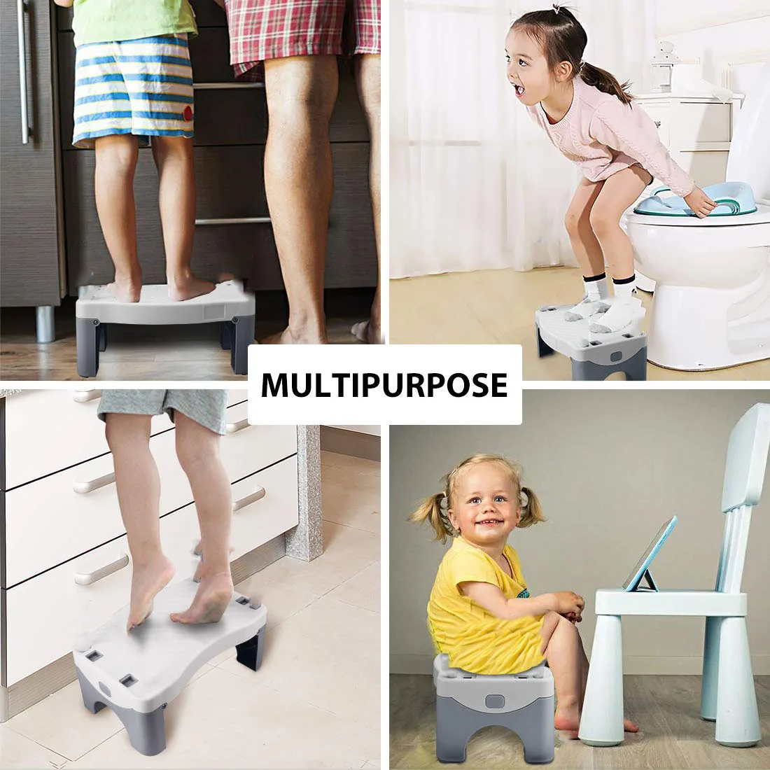 Kids Step Stool Potty Training Foldable Non-Slip Base Toilet Stool, Adult Poop Footstool Multi-Function Fit for All Toilets