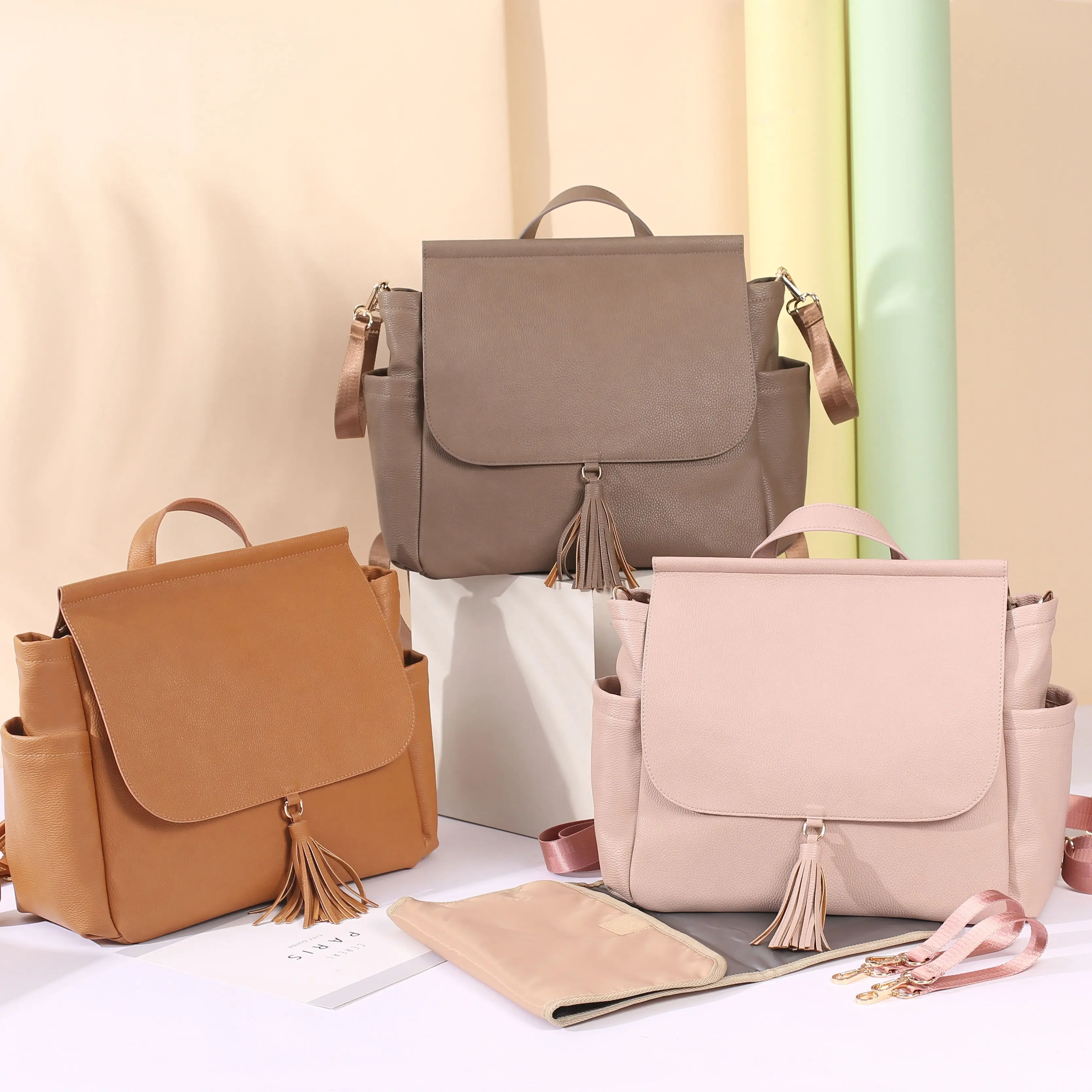 Multifunction Leather Diaper Bags Large Capacity Baby Bags for Baby Care Changing Bags for Mom Outdoor Travel Maternity Backpack