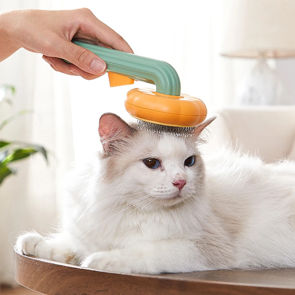 Pet Hair Comb Grooming and Care Removes Hairs Cat and Dogs Pumpkin Pet Brush Self Cleaning Slicker Brush for Shedding Dog Cat - anconmall