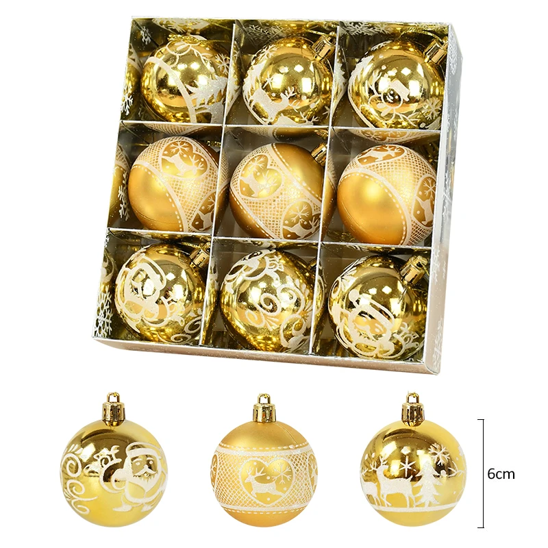 9Pcs 6cm Christmas Tree Balls Hanging Bauble Ornaments Pendant Christmas Decorations for Home New Year Gift Box Navidad Natal