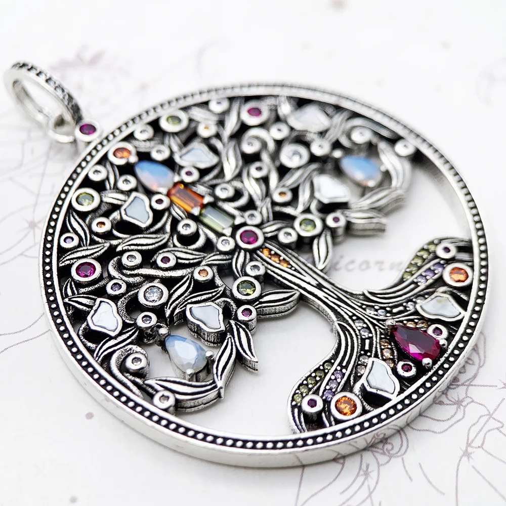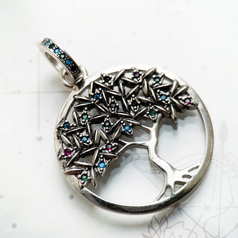 Amulet Magical Lucky Symbol Tree Flower Karma Whell Sun Bird Butterfly Pendants Jewelry 925 Sterling Silver Gift For Women Men
