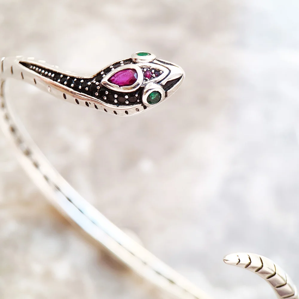 Bangles Snake Europe Style Fine Jewelry For Women Spring Brand New Bohemia Gift In Blackened 925 Sterling Silver