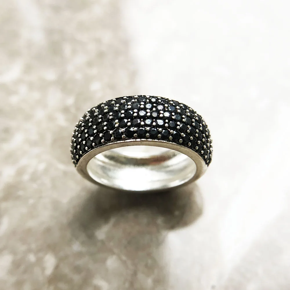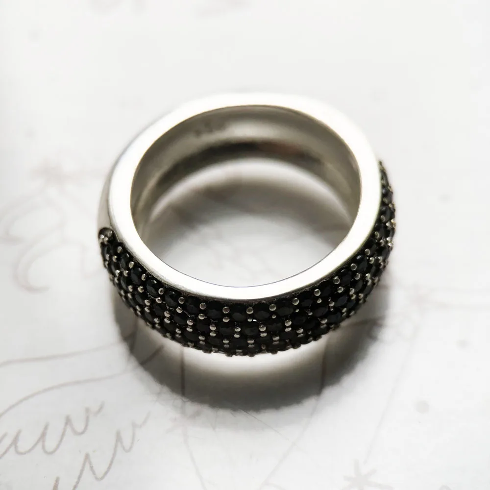 Black Pave Band Ring,Europe Style Classic Fine Jewerly For Men & Women Gift In 925 Sterling Silver
