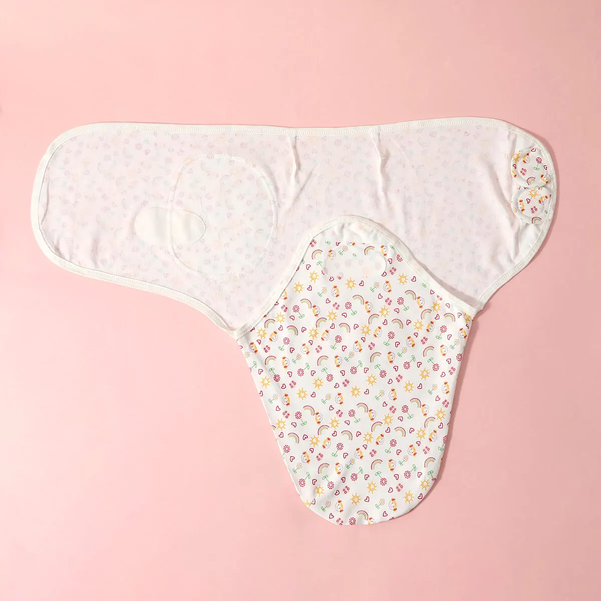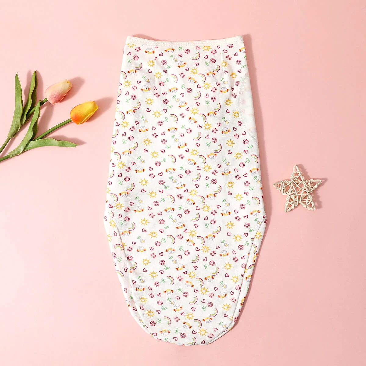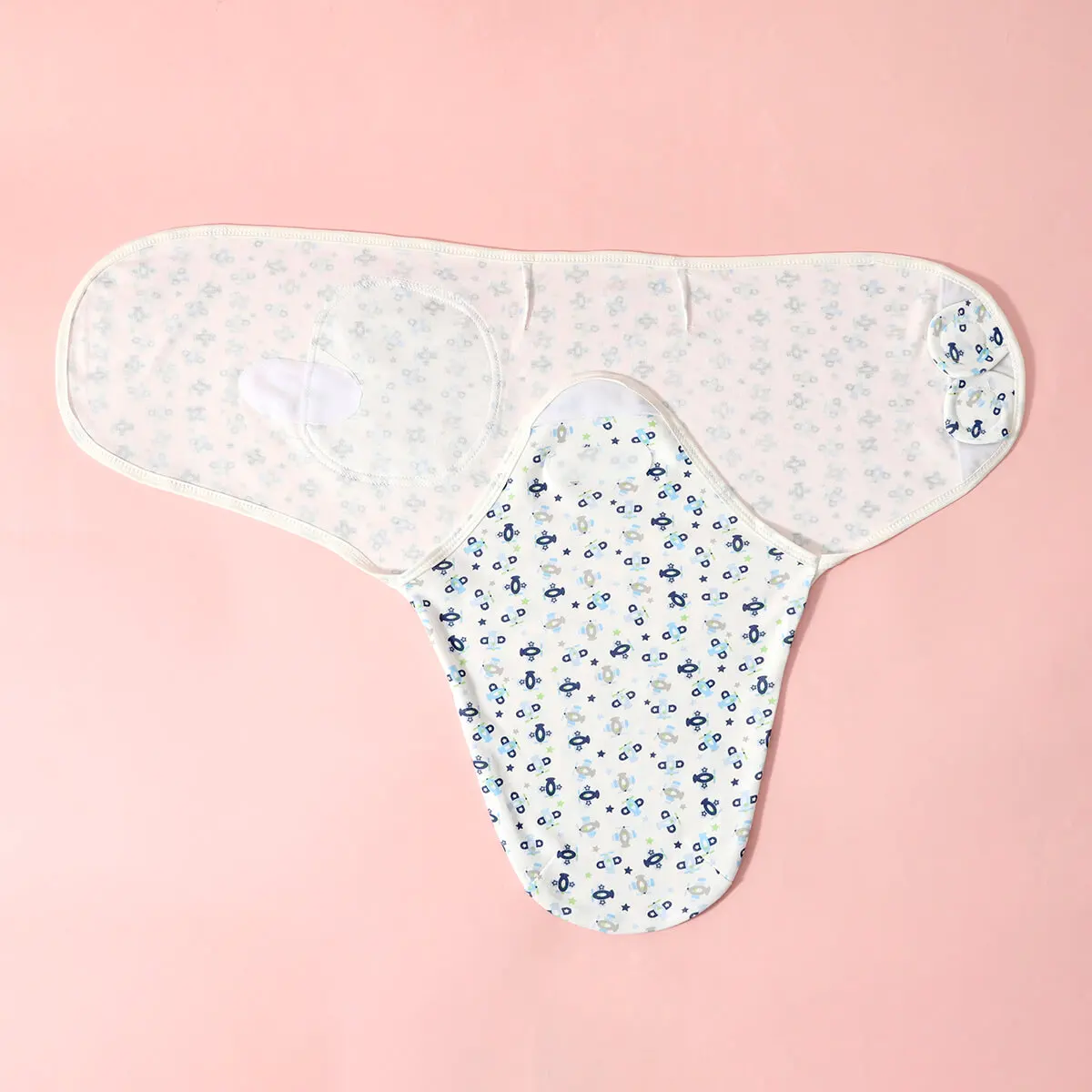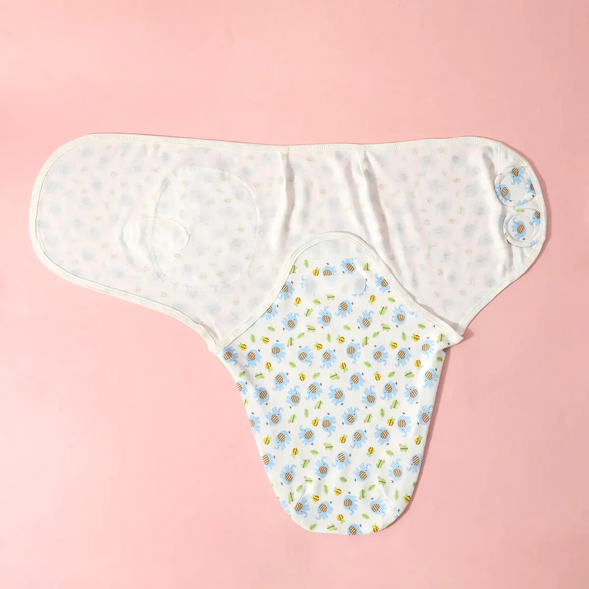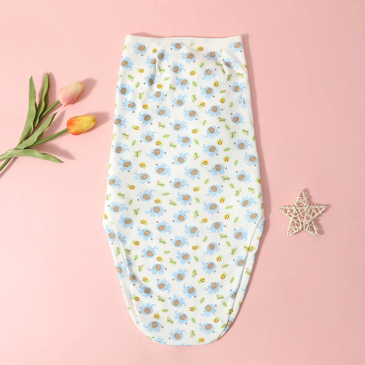 hibobi 2Pcs Cotton Soft Baby Sleeping Cartoon Printed with Bear Ears Hat Design Swaddle Bags for Newborn Infant Wrap Blanket
