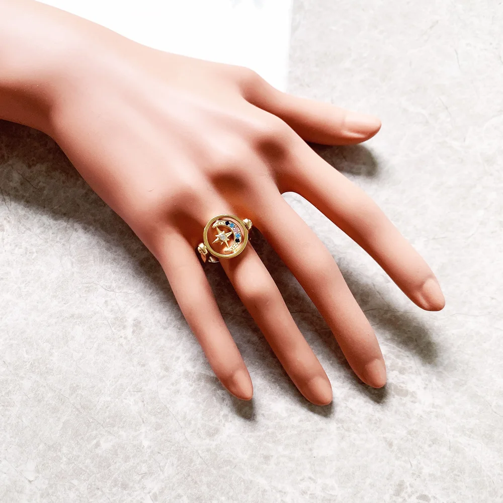 Ring Royalty Star & Moon Gold,Europe Fine Jewerly For Elegance Women,2022 Spring Bohemia Gift In 925 Sterling Silver
