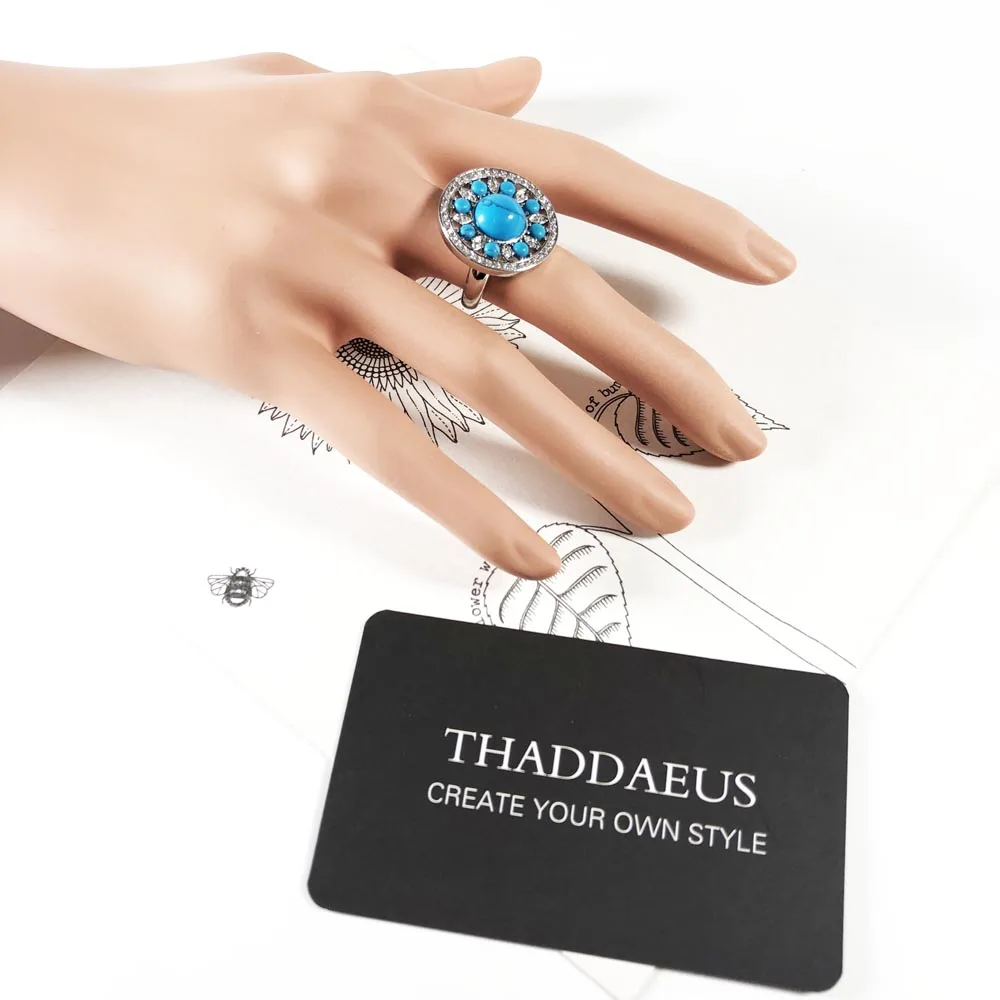 Round,Blue,Ornament,Ring,Europe,Style,Glam,Fashion,Good,Jewelry,Women,Spring,Gift,925,Sterling,Silver