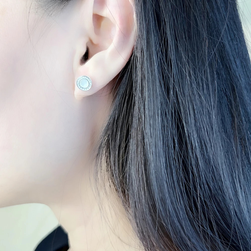 Round Shell Studs Earrings Romantic Pure 925 Sterling Silver Jewerly Gift For Women