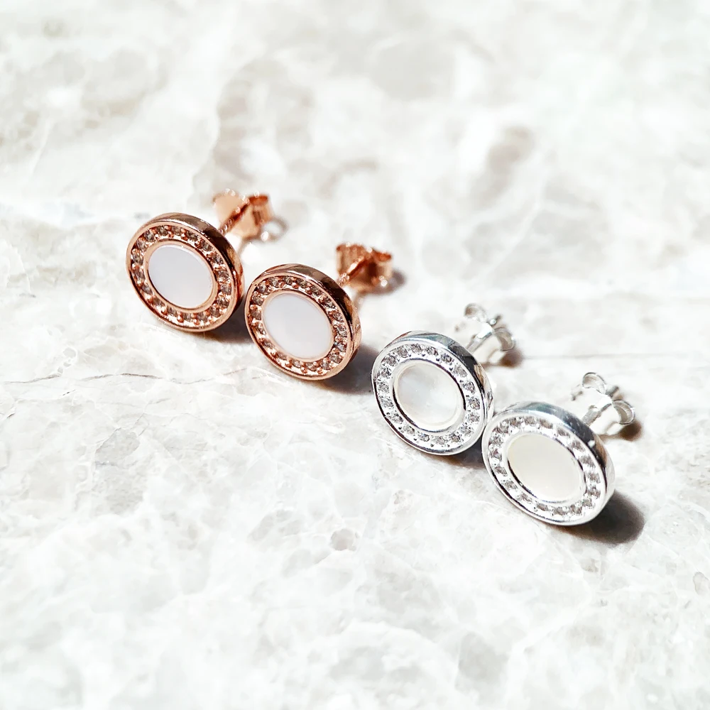 Round,Shell,Studs,Earrings,Romantic,Pure,925,Sterling,Silver,Jewerly,Gift,For,Women