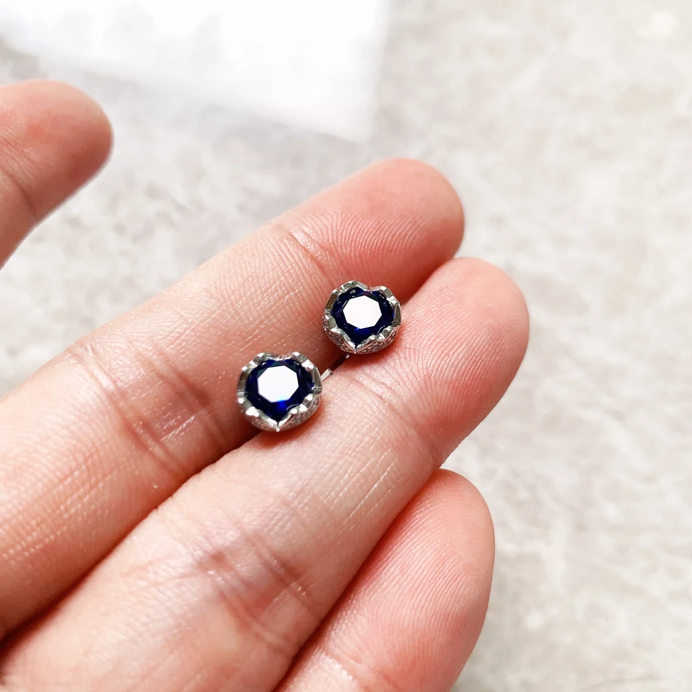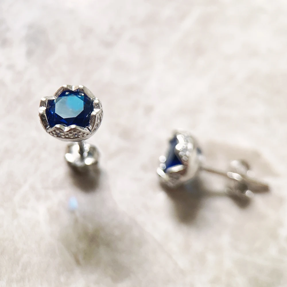 Stud Earrings Dark Blue Lotus Europe Style Glam Fine Jewerly For Women Gift In 925 Sterling Silver