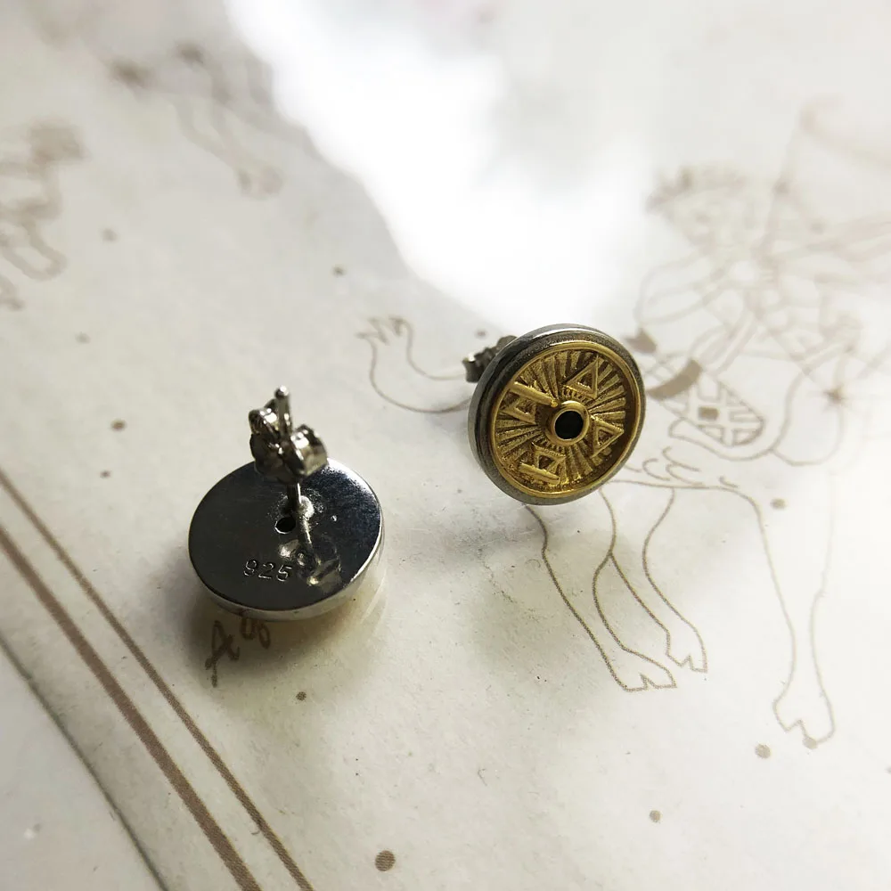 Stud,Earrings,Gold,Elements,Fire, Water, Air,Earth,Europe,Fine,Jewerly,Women,Men,Lucky,Charms,Gift,925,Sterling,Silver