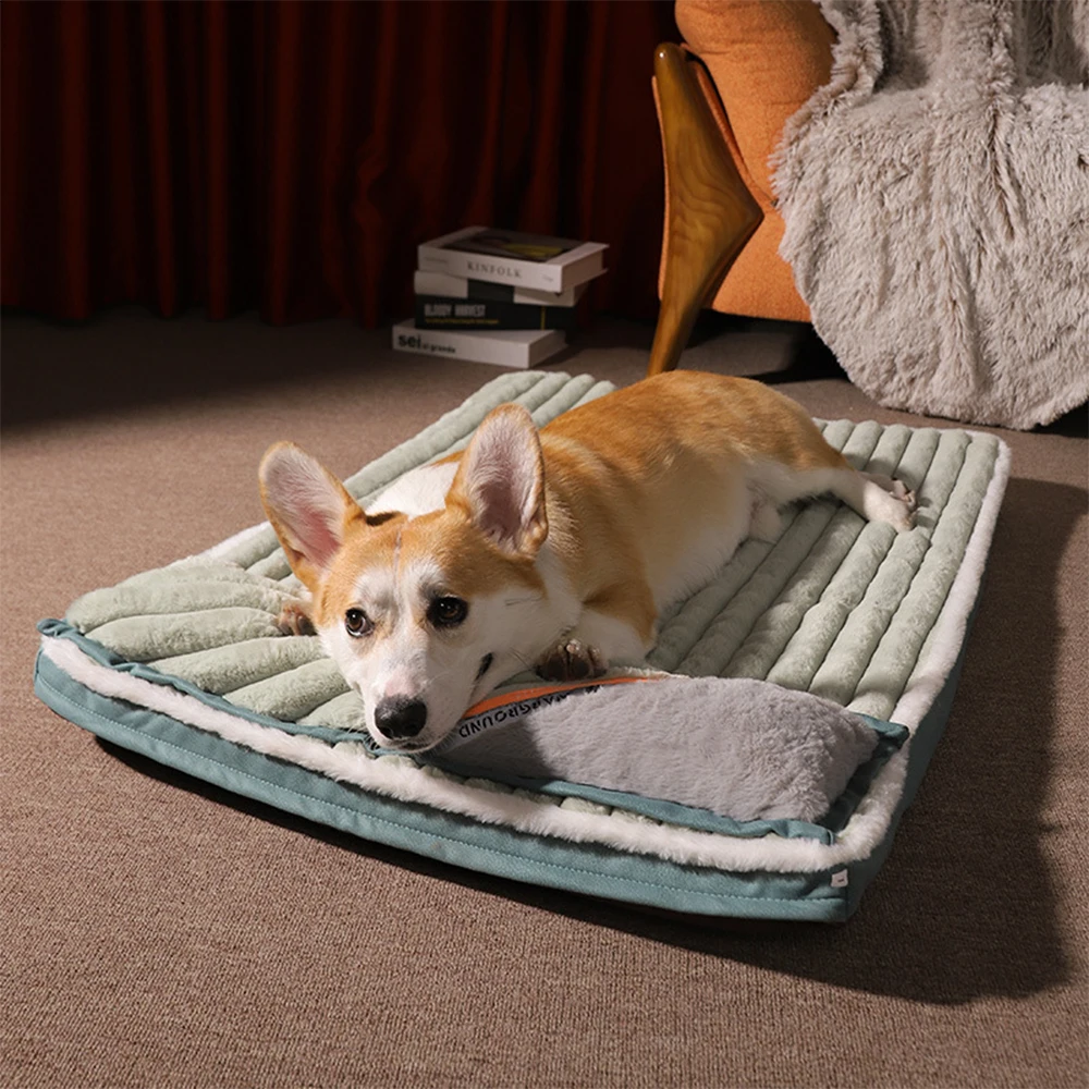 Winter Padded Dog Cushion Warm Fleece Dog Mat Dog Pillow Non Slip Removable for Cleaning Pet Bed for Small Medium Large Dogs Cat